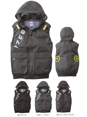 ■形状特長空調ファン取付対応 ミドルバックファン仕様 フルハーネス対応 ハーネス用フック掛け ハーネス取り出し口 大型フード取り外し可能 ダブルポケット 背面保冷剤ポケット 立体構造 左袖多用途ポケット