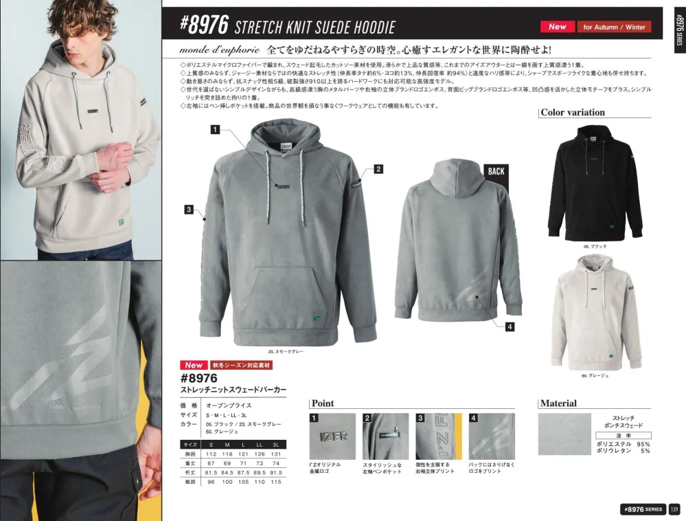 ストレッチニットスウェードパーカー アイズフロンティア8976
