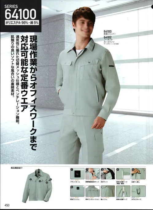ノータックカーゴパンツ 自重堂64102のサイズ表