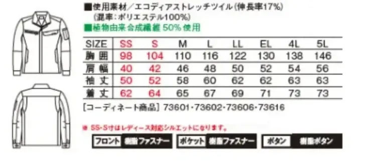 73600 エコ製品制電ストレッチジャンパー