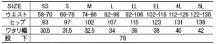 エコ静電ストレッチノータックパンツ 自重堂73601のサイズ表