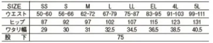 エコ静電ストレッチレディースパンツ 自重堂73606のサイズ表