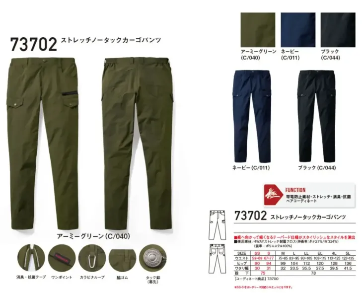 ストレッチノータックカーゴパンツ 自重堂73702