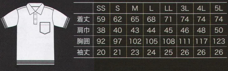 半袖ポロシャツ(リブ付) クロダルマ26451のサイズ表
