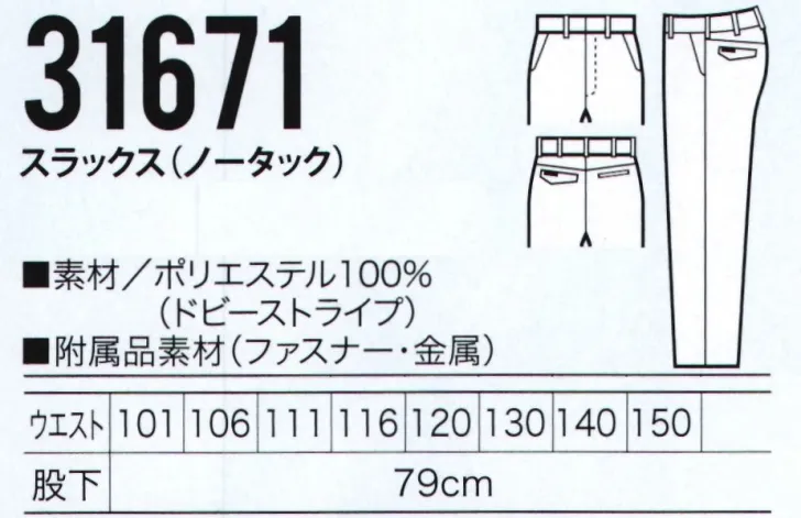 スラックス(ノータック) クロダルマ31671-Bのサイズ表