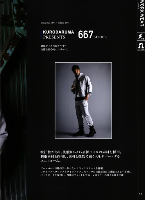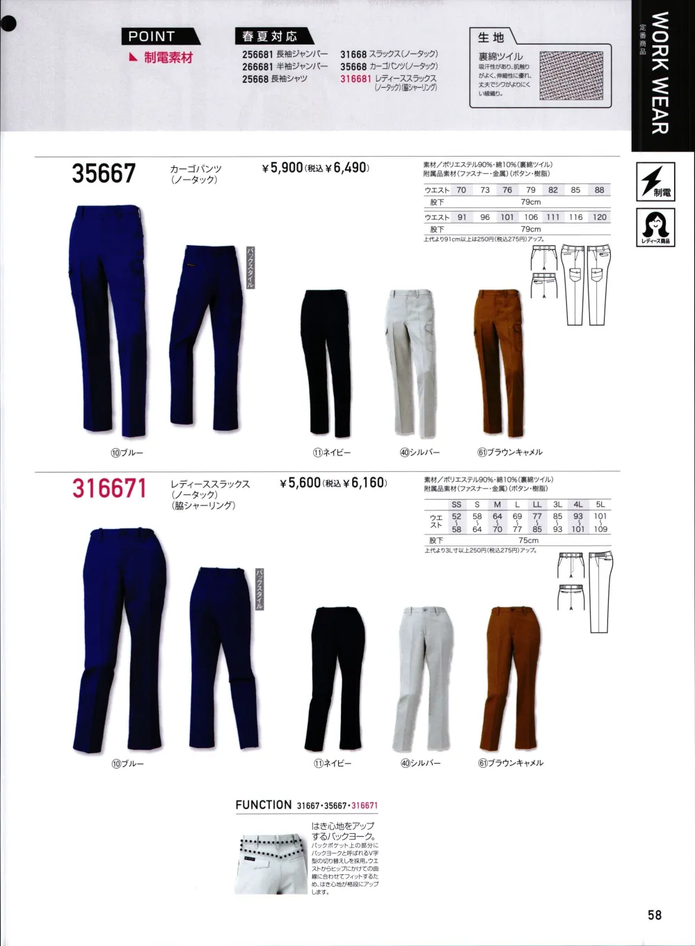 カーゴパンツ(ノータック) クロダルマ35667のサイズ表