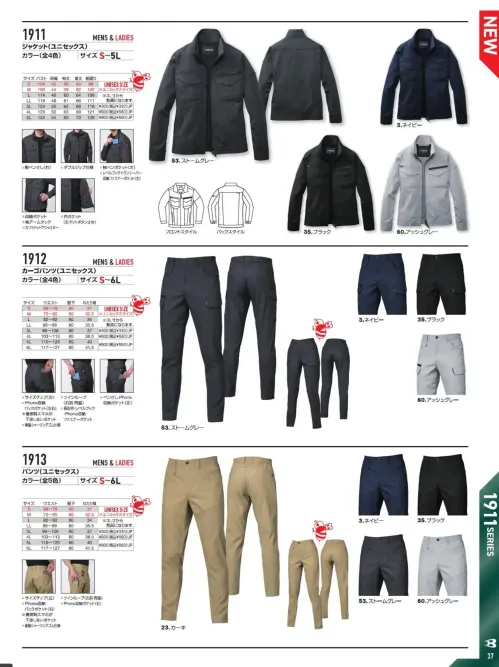 ・カラー:カーキ(23)・ネイビー(3)・ブラック(35)・ストームグレー(53)・アッシュグレー(60)