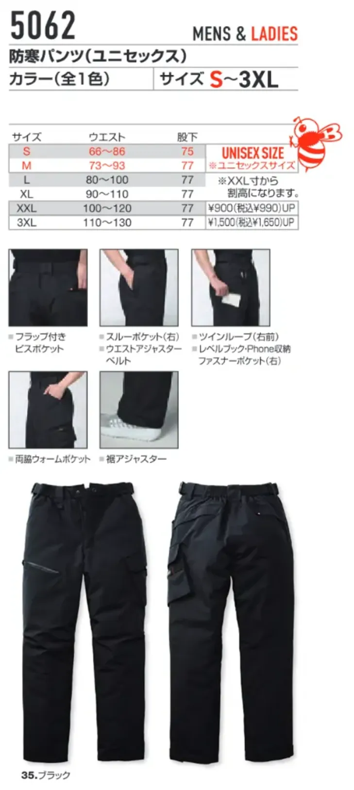 5062 防寒パンツ(ユニセックス) WASHABLE ミリタリーエッセンス