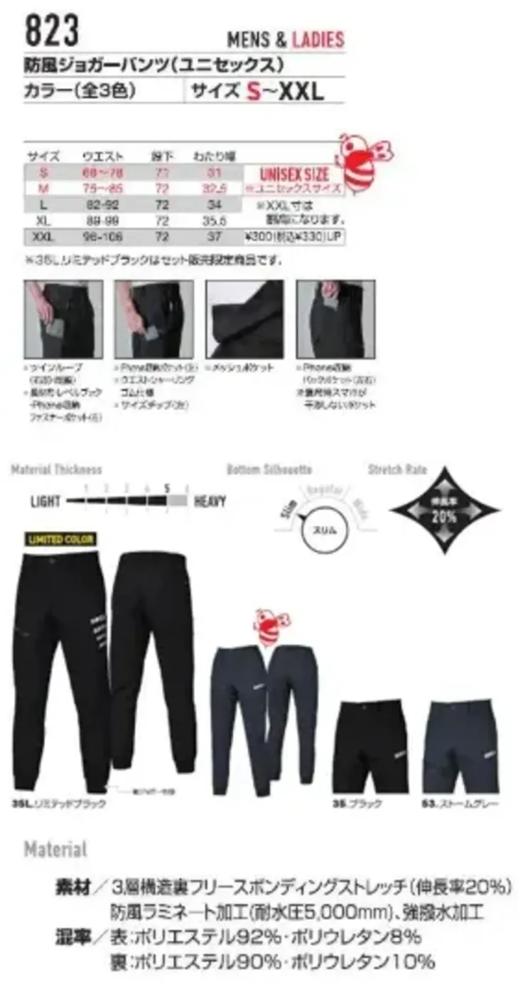 保温性・ストレッチ性を持つ3層構造フリースボンディングストレッチ素材を使用した防風ジョガーパンツです。耐水圧5,000mmの撥発水加工を施し、伸長率20%の高いストレッチ性により、快適な動きやすさと暖かさを両立させたユニセックス対応のボトムスです。