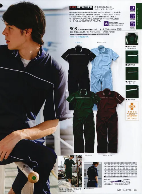 KR-SPORTS半袖ツナギ クレヒフク808のサイズ表