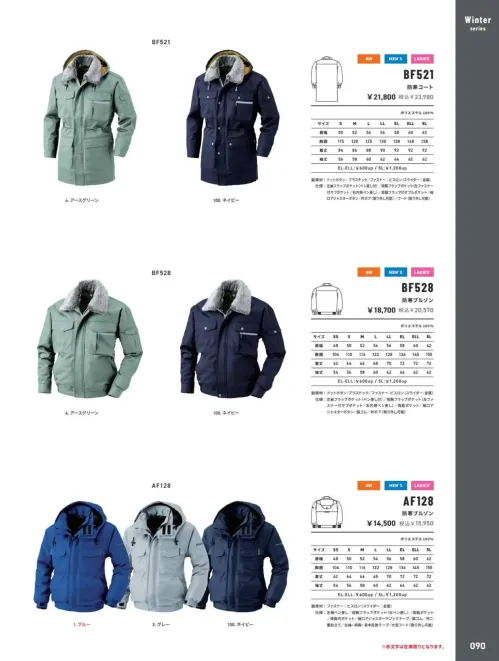 防寒ブルゾン アルトコーポレーションAF-128のシーズンアイテム
