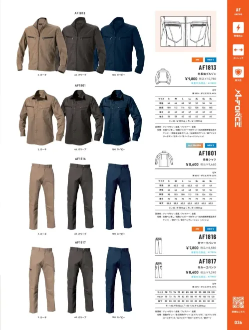 ワークパンツ アルトコーポレーションAF-1816のサイズ表