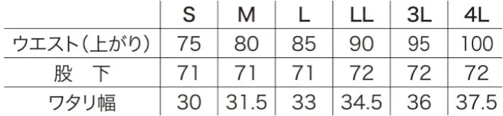 レギンスカーゴパンツ 村上被服6744のサイズ表
