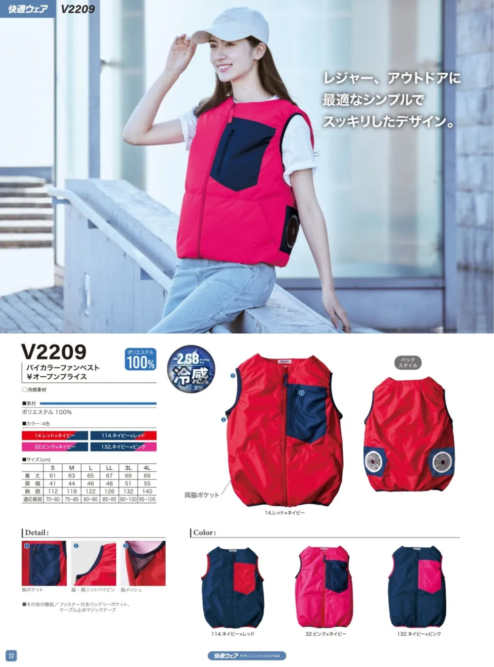 バイカラーファンベスト(快適ウェア) 村上被服V2209のサイズ表