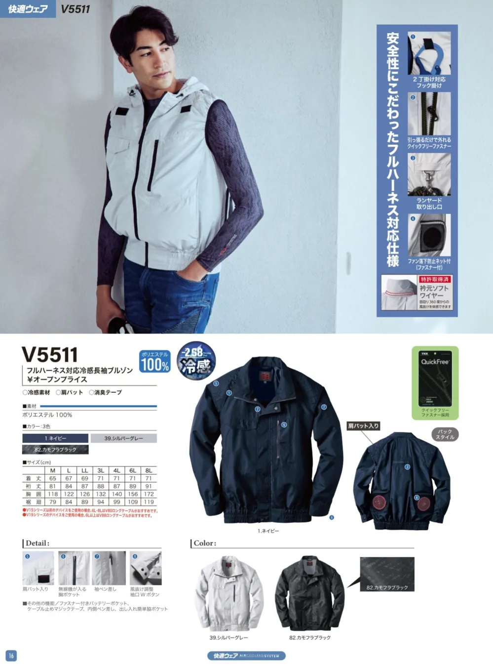 フルハーネス対応冷感ブルゾン(快適ウェア) 村上被服V5511のサイズ表