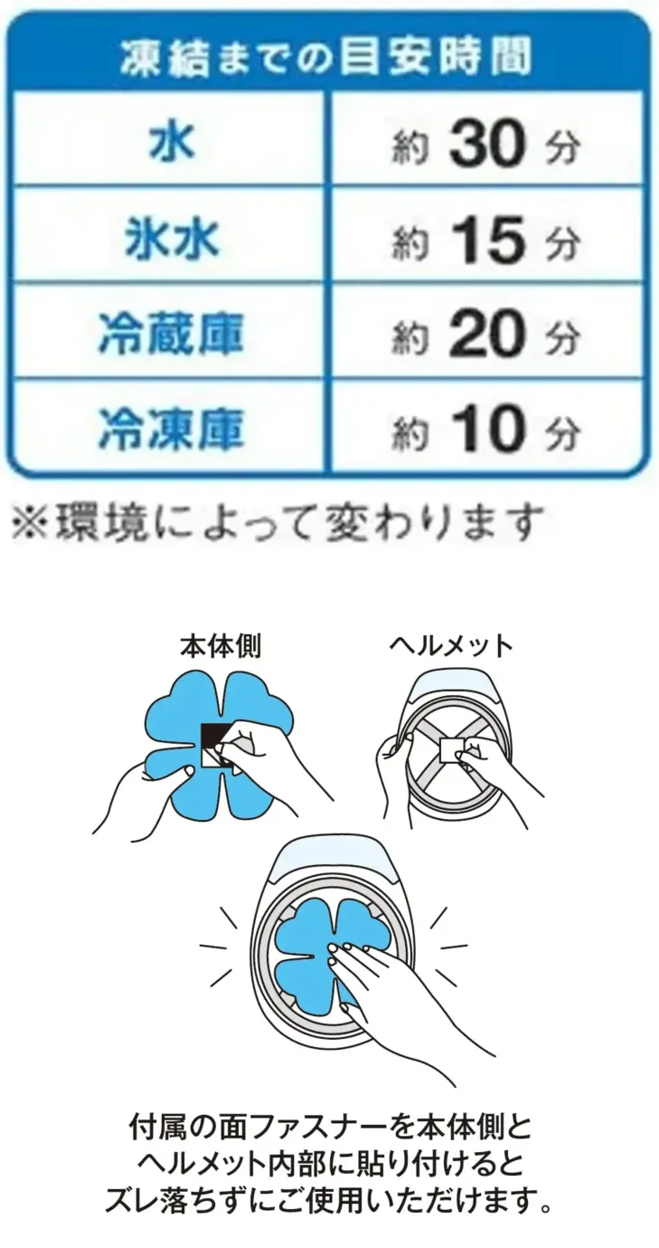 ・凍結目安時間:水 約30分・氷水 約15分・冷蔵庫 約20分・冷凍庫 約10分(環境により変動します)