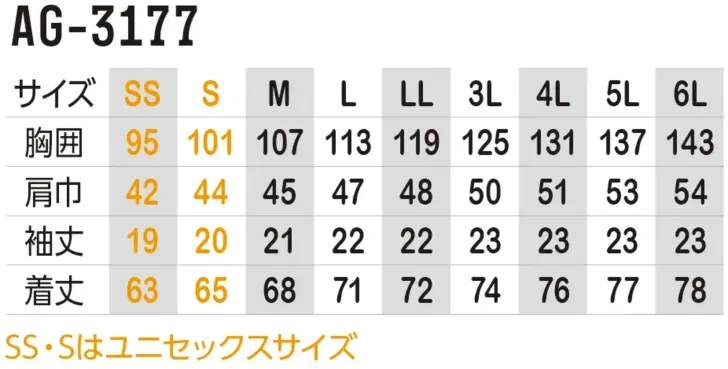 ・サイズ:SS~6L(SS・Sはユニセックスサイズ)