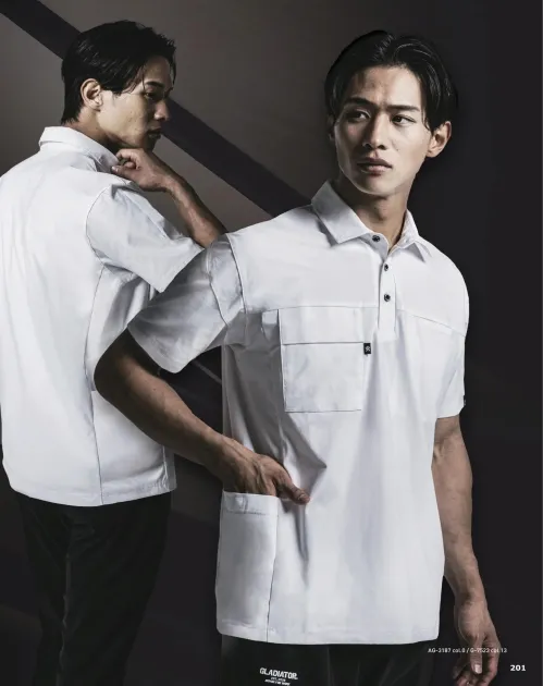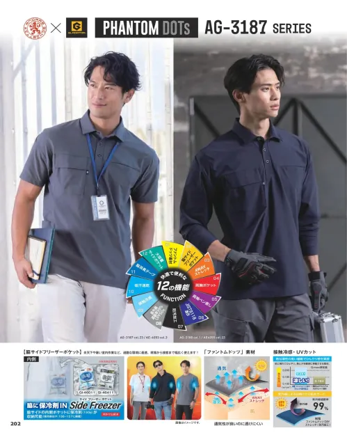 AG-3188 ファントムドッツ 冷感DRY サイドポケット 長袖ポロシャツ