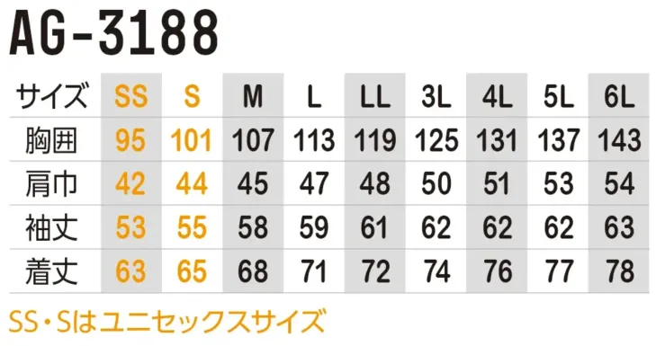 ・サイズ:SS~6L(SS・Sはユニセックスサイズ)
