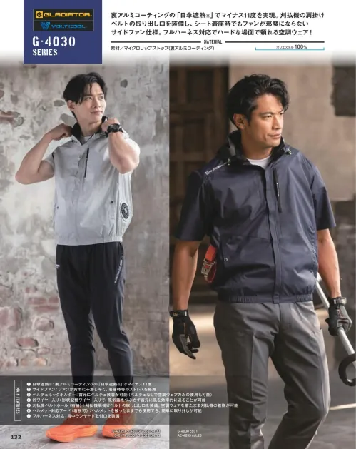 ■形状特長サイドファン|ペルチェネックホルダー対応|フルハーネス対応|刈払機ベルトホール|コードストッパー|バッテリーポケット|ヘルメット対応フード(取外し可能)