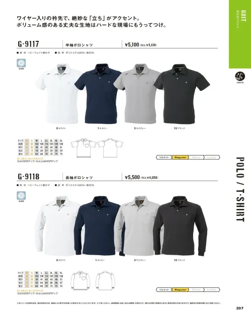 長袖ポロシャツ コーコス信岡G-9118のサイズ表
