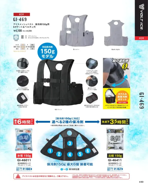 GI-469 アイスメッシュベスト 保冷剤150g用 6ポケット&ペルチェ穴