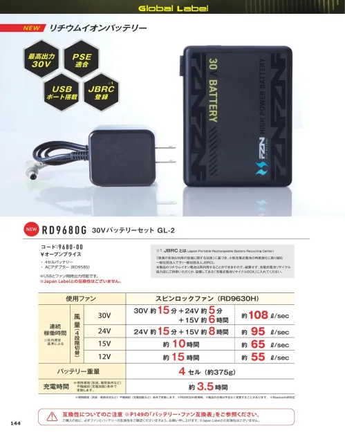 RD9680G 30Vバッテリーセット GL-2