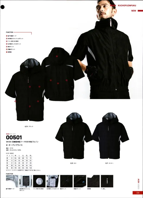 MHAK 空調風神服フード付半袖ブルゾン(ファン・バッテリー別売)(MK-500) 大川被服00501のサイズ表