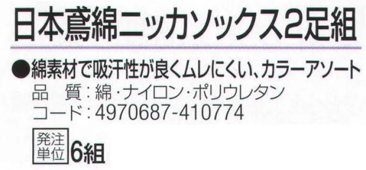 日本鳶綿ニッカソックス(2足組×6組入) おたふく手袋766
