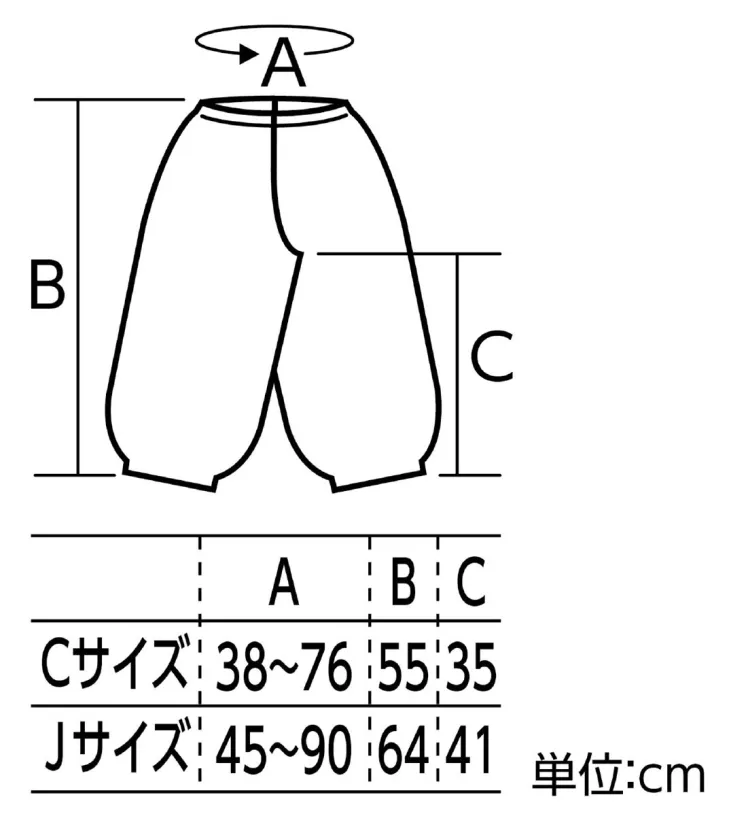 ソフトサテン サルエルパンツ Cサイズ 赤 アーテック15060のサイズ表
