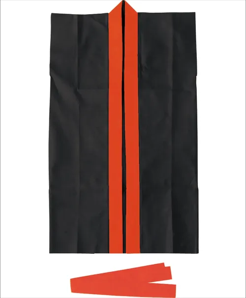 カラー不織布ロングハッピ(ハチマキ付) 黒 襟赤 C