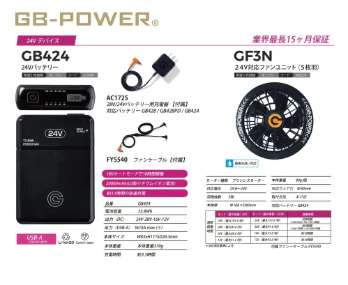 ★24V出力バッテリー(GB424)と併せてご使用ください