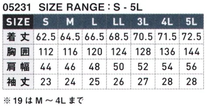 STX コーデュラエアショートジャケット(ファン・バッテリー別売) シンメン05231のサイズ表