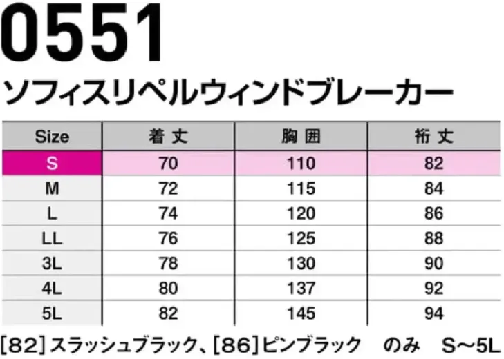 ※82スラッシュブラック・86ピンブラックのみS~5Lサイズ展開となります。