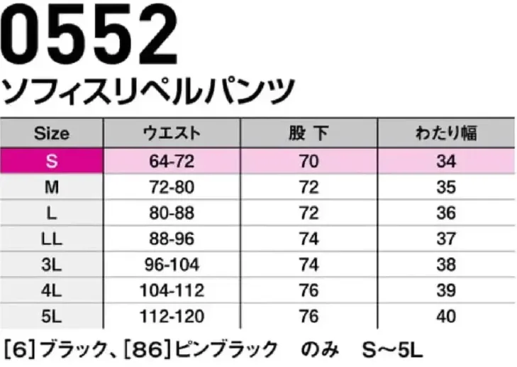 ※6ブラック、86ピンブラックのみS~5Lサイズ展開となります。