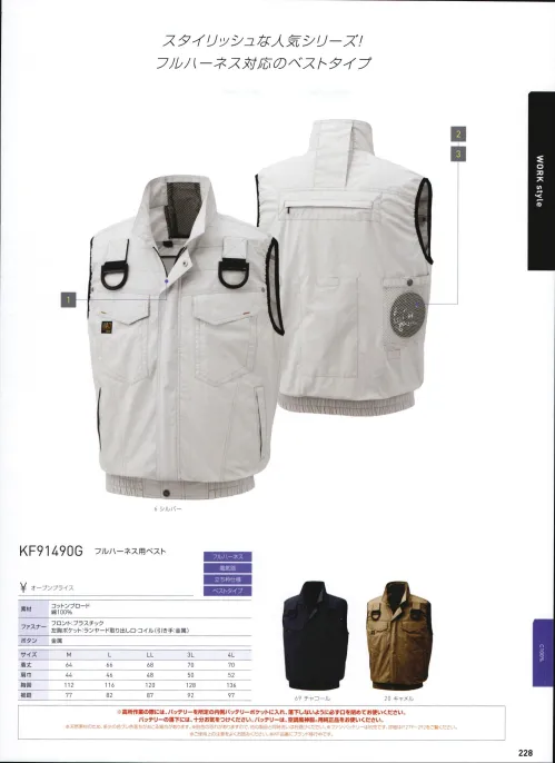 フルハーネス用ベスト(空調風神服)(ファン・バッテリー別売り) 空調風神服KF91490G