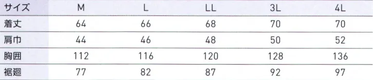 フルハーネス用ベスト(空調風神服)(ファン・バッテリー別売り) 空調風神服KF91490Gのサイズ表
