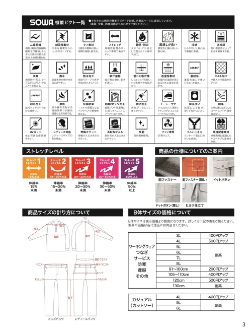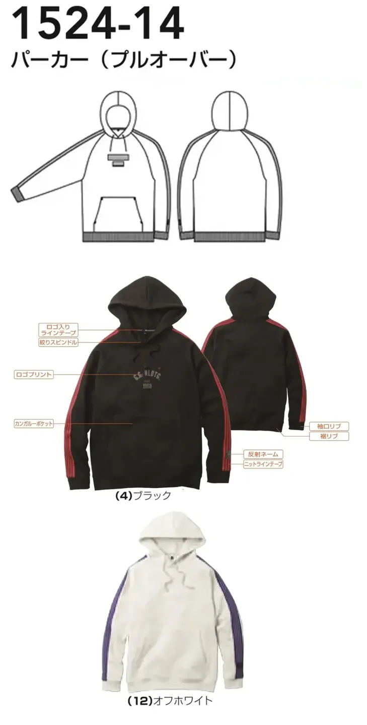 パーカー(プルオーバー) 桑和1524-14のサイズ表
