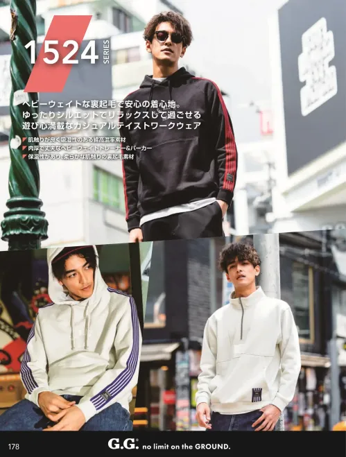 ヘビーウェイトな裏起毛で安心の着心地。ゆったりシルエットでリラックスして過ごせる遊び心満載なカジュアルテイストワークウェア