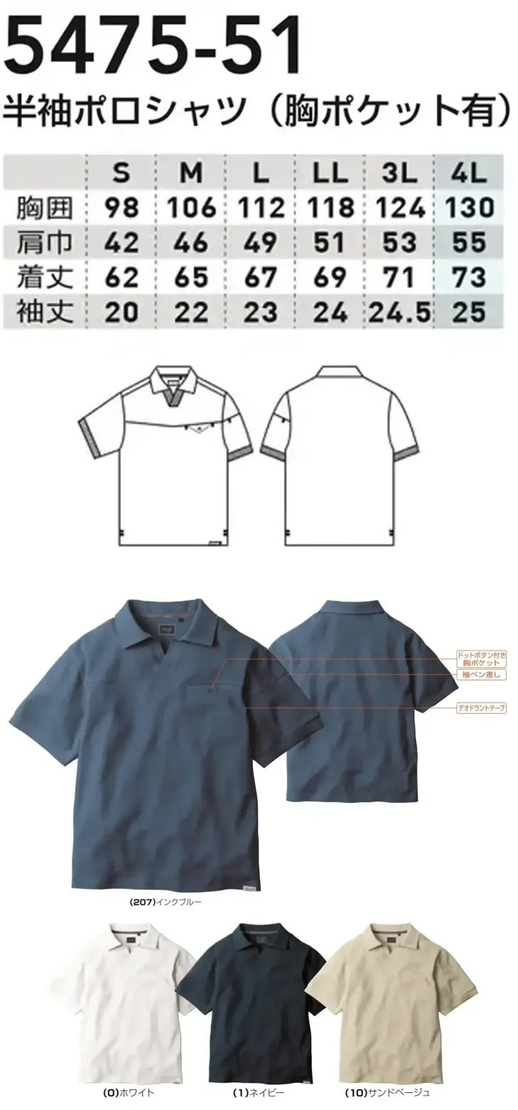 5475-51 半袖ポロシャツ(胸ポケット有)