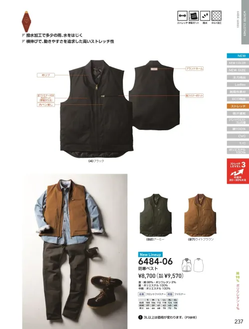■素材特長ストレッチ・撥水加工・キルト加工・襟リブ