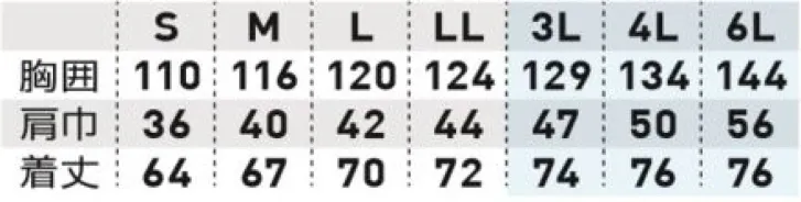 EF用ベスト(ファン・バッテリー別売) 桑和7439-06のサイズ表