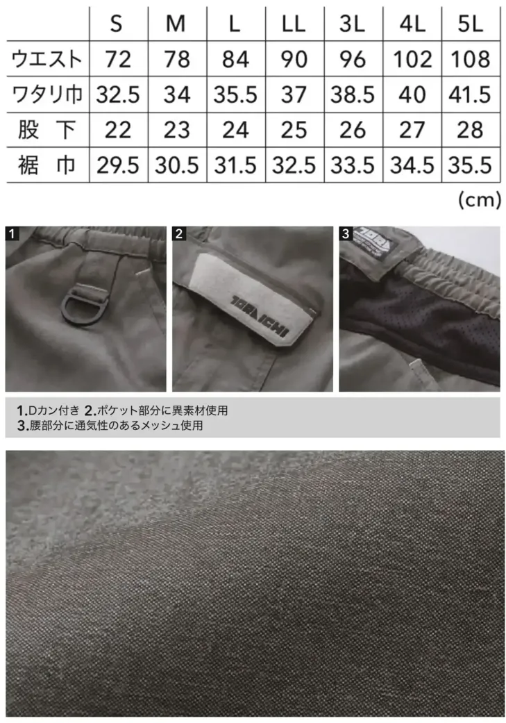 カーゴハーフパンツ 寅壱2132-241のサイズ表