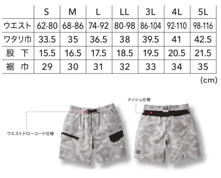 ■形状特長ウエストゴム仕様 ウエストドローコード 一部メッシュ仕様 カーゴポケット ハーフ丈 レギュラーシルエット
