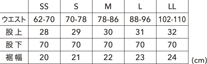 TCNクロスニッカーズパンツ TS DESIGN55344のサイズ表