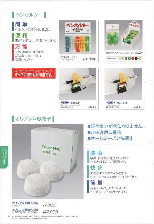 化粧小箱入り(1袋2個×10袋) ヘルメットに取り付けるだけで簡単。書きたい時にペンが取り出せて便利。タオル掛けに、車内用のゴミ袋ハンガーとして活用いっぱい!!みぞなしタイプ・みぞつきタイプ、すべてに取り付け可能です。