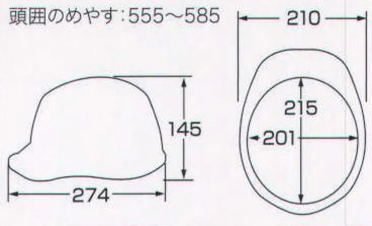 WM-7型ヘルメット(キープパット無し) ワールドマスト ヘルメットWM-7のサイズ表