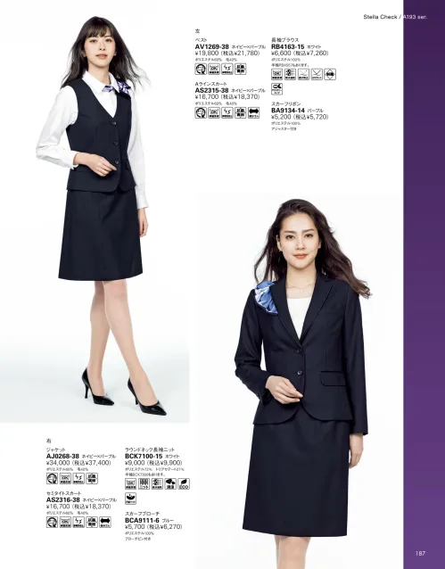 セミタイトスカート ボンオフィスAS2316のサイズ表