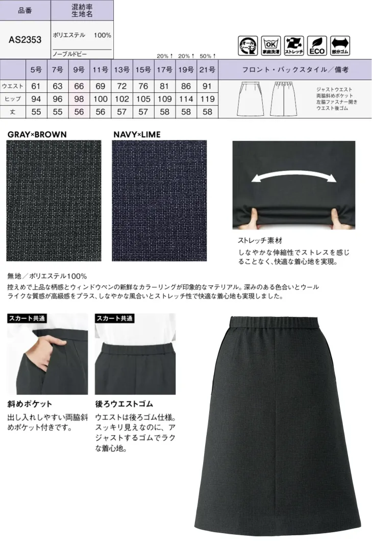 Aラインスカート ボンオフィスAS2353のサイズ表
