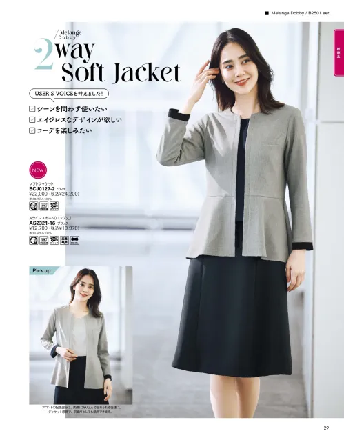 ソフトジャケット ボンオフィスBCJ0127のサイズ表